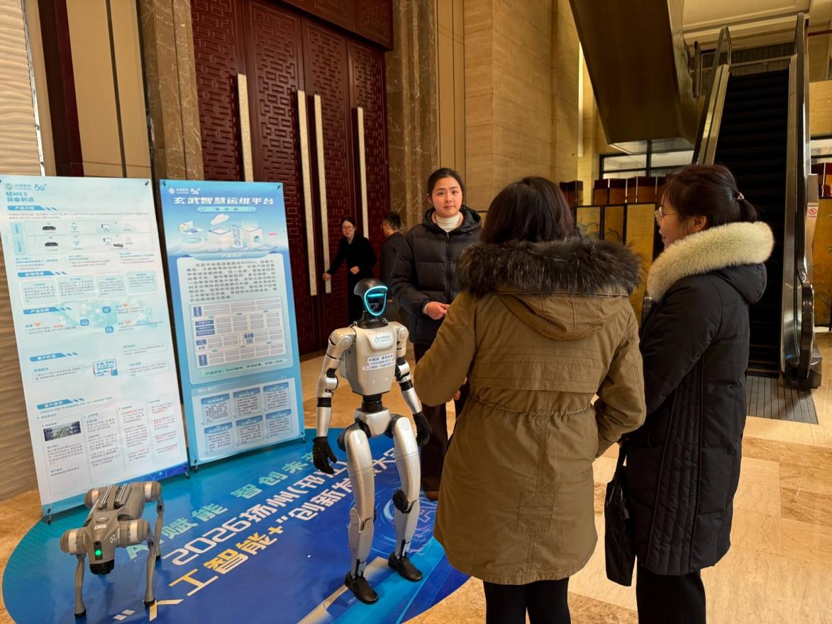 会议期间,扬州移动承担了现场展陈布置、互动体验区搭建及会务协调保障等关键任务,其提供机器人、机器狗与数字人等互动装置,有效提升了现场的科技体验感,让参会嘉宾直观感受AI技术魅力。