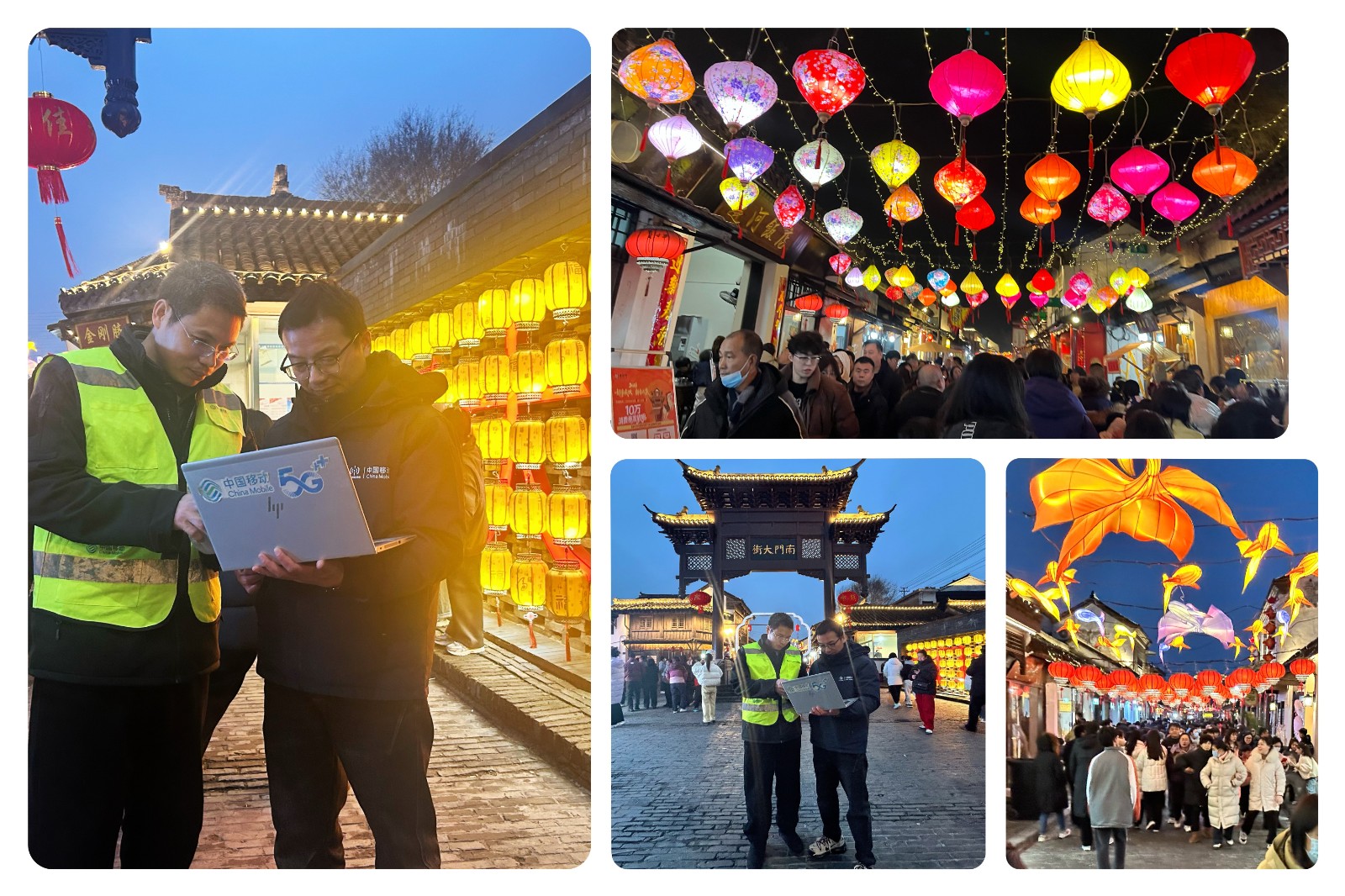 近日,扬州首届“夜市千灯·福满扬州”元宵灯会在宋夹城体育休闲公园璀璨启幕。为保障大型活动安全有序运行,中国移动扬州分公司(以下简称“扬州移动”)依托5G、物联网、大数据技术,以5G-A通感一体网络、AI智能调度系统等新技术筑牢通信基石,以实时客流跟踪统计系统为景区管理、客流疏导、安全防控提供精准支撑,让千年古城灯会既热闹又安心。